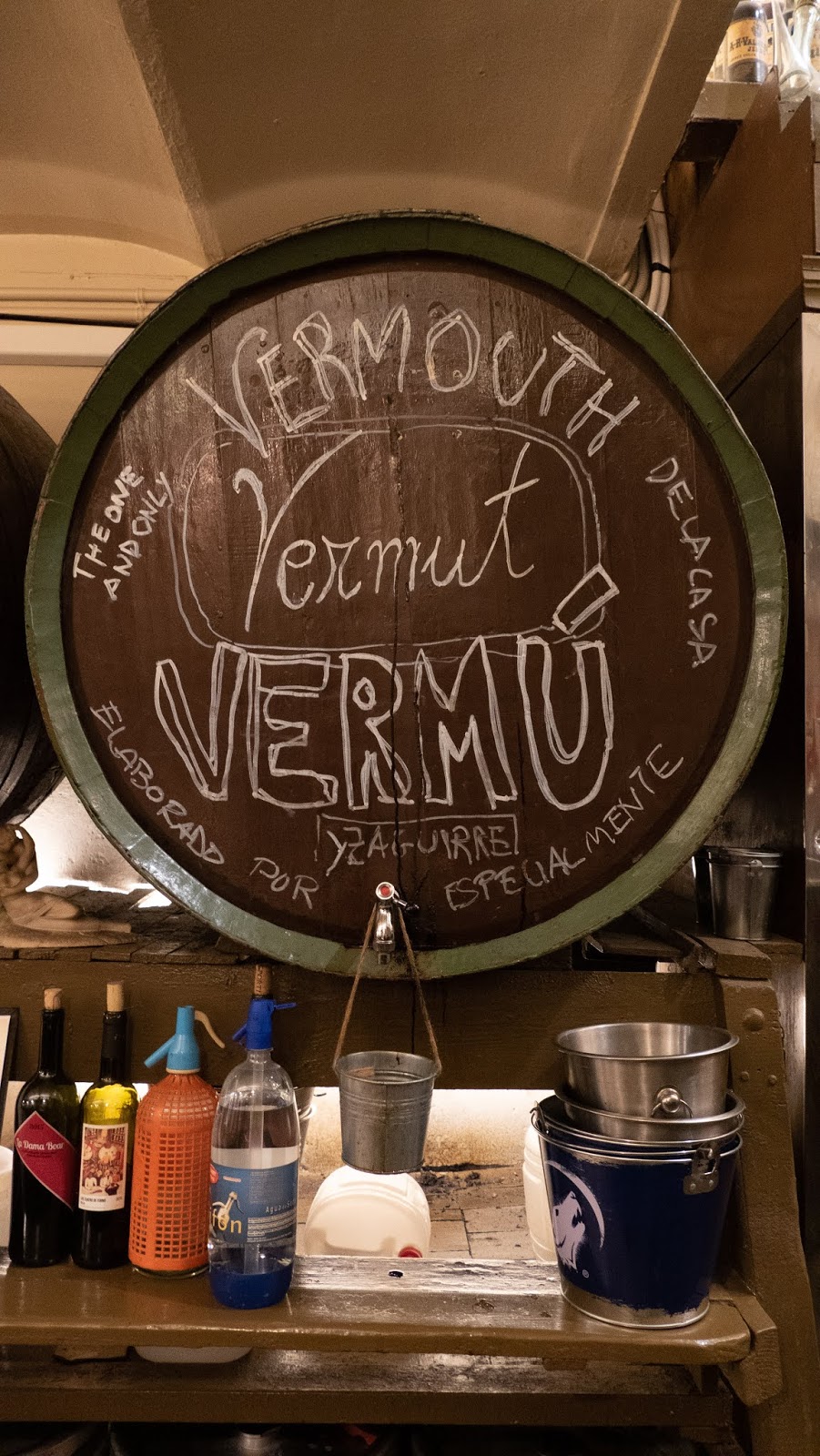 There’s a bodega (wine store) across the street that we visited about 3 years ago. It was dark and very dirty and an ancient lady presided over huge casks of wine and a few old men stood around wooden casks and smoked drank. Very intimidating! She sold us plastic coke bottle full of cheap wine–about $2.00 a liter. Rough stuff, but authentically charming in its own way. It has been closed for a few years, but now a new bodega, much more uptown, has opened, apparently choosing to keep some of the old casks. It’s been a fantasy of mine to return this spot, and we had our chance after grocery shopping tonight. Not nearly as intimidating, but fun. Then onto a late dinner–after 10:00–of duck and vegetables. We are almost superseding BCN time!