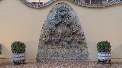 We’ve passed by it many times. It’s one of the main features of the “Golden Block” or “Block of Discord,” and only about 5 blocks from our apartment. The style is organic in a broad sense of holistic connectivity, but also insofar as the elements echo the physicality of bones and skin. One of the nicknames for the Casa Batlló is “The House of Bones,” a title that draws attention to the stark emergence of vertebrae on the exterior or a receding seashell in the ceiling pattern of the attic.
