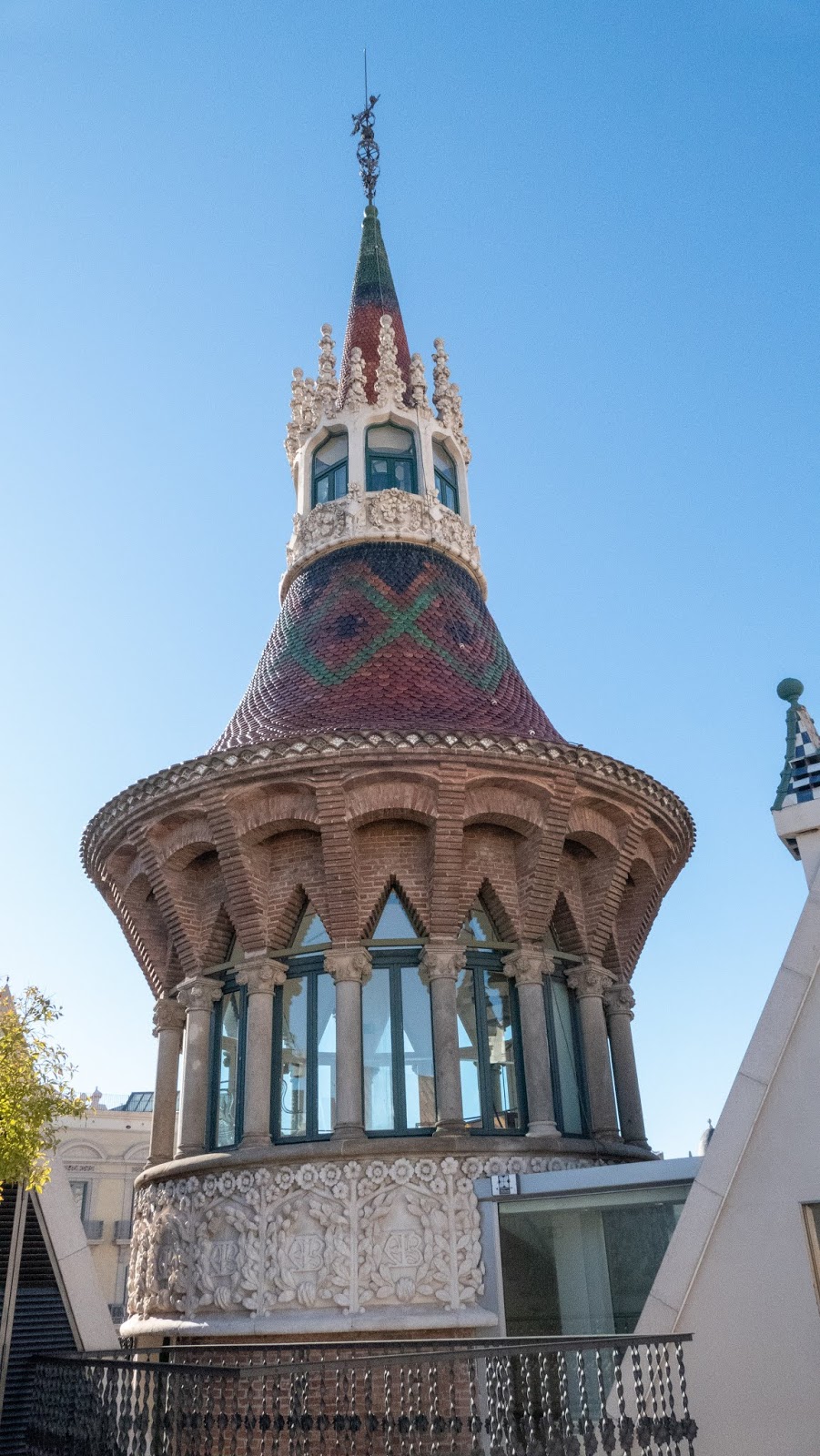 It is fanciful yet grounded in nature: echoes of flowing water and anatomy throughout, and the rooftop and exterior recall St. George (San Jordi) and the dragon, with the cross on the roof recalling the hilt of his (rather impressive!) lance.