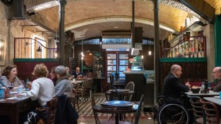 Our lunch restaurant is old and traditional with an uninspired menu but the people watching is superb.