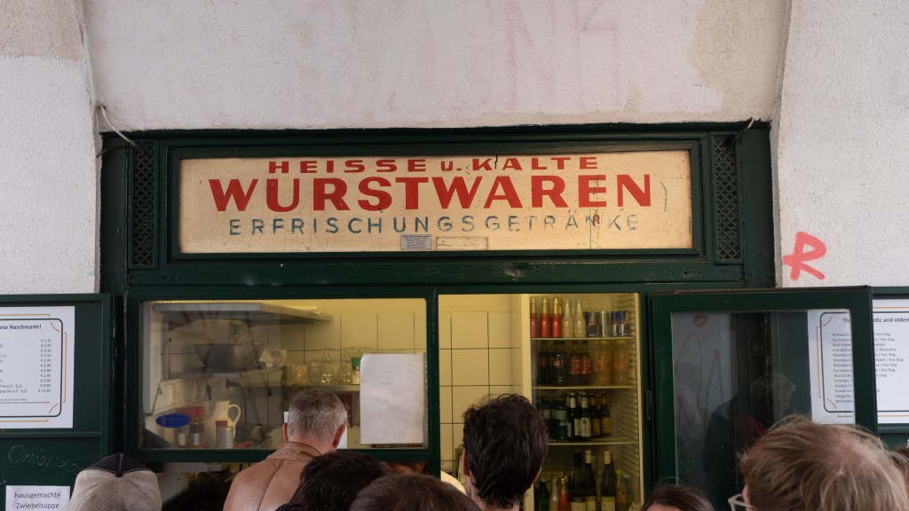 We set out on the Rick Steve’s Vienna Straßenbahn tour. Clearly, we could have done more advanced planning, namely cuing the tour and getting set with our headphones. We do catch up, but then find the entire experience unsatisfying. Maybe it’s because this is our fourth trip to Vienna, so are not in need of that general Ringstraße tour. When the tour ends, but we decide to rebel against Steve’s advice to get off the tram assuming it runs in a tight circle and we can get back to a nice vegetarian restaurant we’d spotted. Not a good choice. We end up in a southern suburb, and slowly make our way back. On the way, we realize we’re near the Naschmarkt, and get off there instead. Perfect decision. We are just at the right spot. And I am back on itinerary.