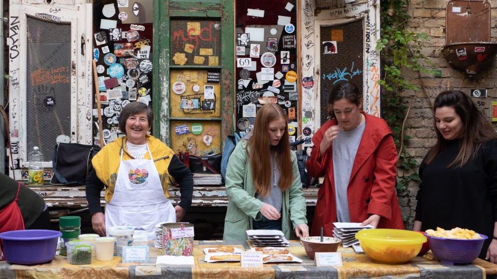 This morning we head out to a weekend market. It is held at a famous “Ruin Bar.” Ruin Bars are a big deal here. They were an organic phenomenon, bars that sprang up in old abandoned buildings. Our street has several such establishments and Lorena is excited to do a ruin bar crawl (it is scheduled for Thursday evening). Anyway, on Sunday morning they hold a farmer’s market at Szimpla Kert, one of the first Ruin Bars. We went and Lorena was in photo heaven. The old building had lots of little rooms and metal stairwells with junk and decorations everywhere. I think this idea would work well in Asheville if you could get past the fire codes.