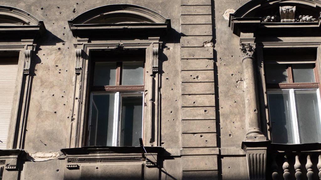 After a return to the apartment to put away our market bounty we headed out on a walking tour of the eighth district. This area is less touristy and in the process of gentrification. The buildings are dark with years of pollution and the communist presence mixed with old Budapest is strong. One old building still had bullet holes in it! We walk ourselves silly ending up at an old cemetery.