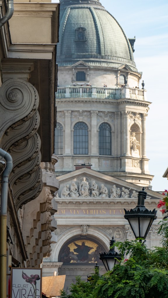 We head to a Cat Café to help wear away the sorrow of the past. On the way we pass St. Stephen’s basilica. For some reason I haven’t wanted to go into any cathedrals this trip, but we do plan to visit the Dohány Street Synagogue Wednesday morning.