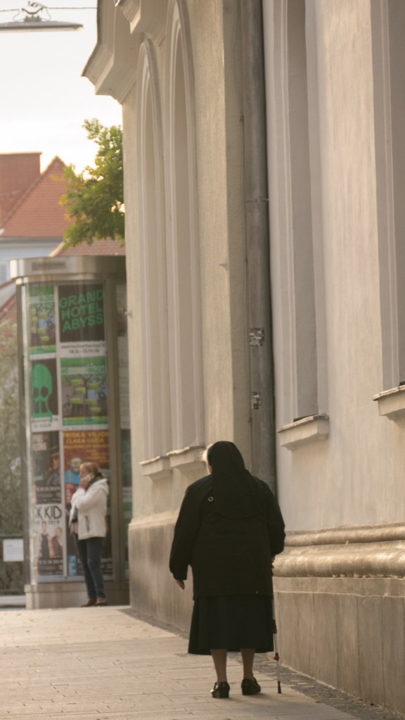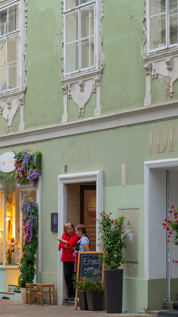 We hang out a nearby park for a bit in the early afternoon before wandering again through the old city. We’re exhausted by 5:30. It’s probably been my biggest walking day thus far. We watch TV and enjoy the Austrian version of the Great British Bake Off, “Das Große Backen.” They are down to three young, beautiful contestants: a blond, brunette and a redhead. It’s all about their looks, not the cooking. Very funny. Kitty says the ending is like Miss America.