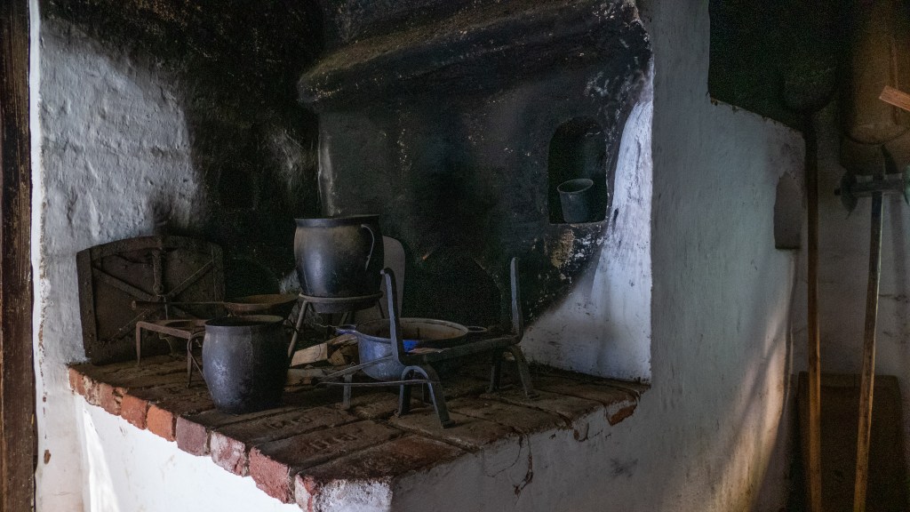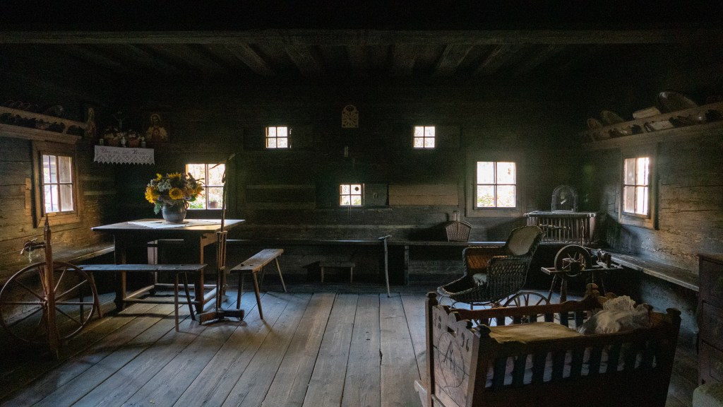 The bus driver is kind and even stops the bus and comes back to show me how to buckle my seatbelt. It takes about an hour and the drive is rural along a river with the road often narrowing down to one lane. The park itself is up what I would call a “holler” and they call it “the valley of histories.” They have over 90 buildings including houses, barns (often combined in one building), ovens, gardens and outbuildings. The insides of the buildings are dark and the ceilings low. You quickly understand how hard life was and how much work it took to sustain your family.