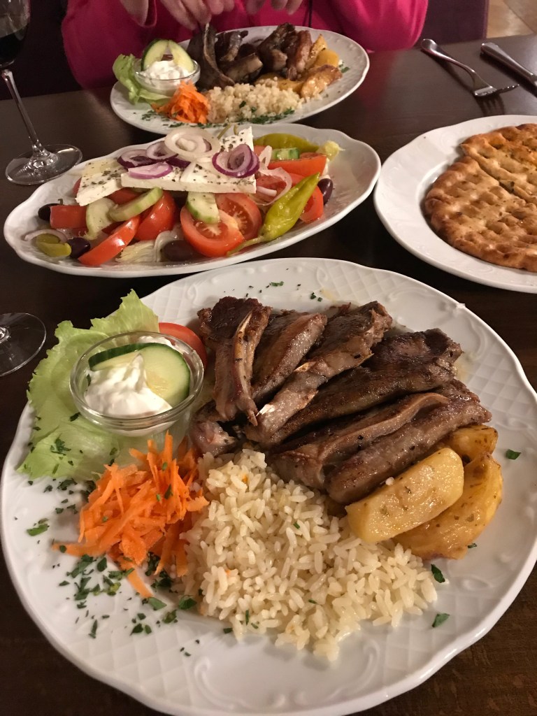 The old man who waits on us is like character in the Carol Burnett skits.  He is deliberate and plodding but also endearing.   We order lamb and red wine and he brings out mounds of food that will haunt us till the day we die.  We laugh remembering “Mrs. Tuttle” and imagine him calling out for her as we remember Tim Conway in all his glory.