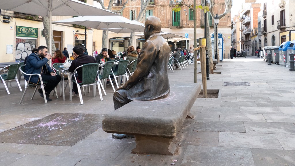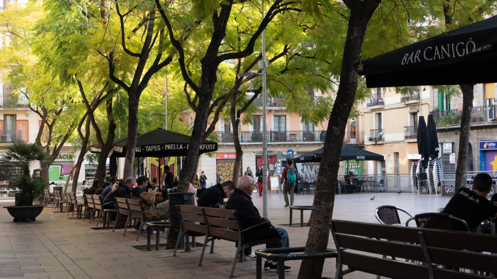 We found folks in Gràcia to be friendly and open despite the numerous “Go Home Tourists!” signs posted about. After a few repeated visits, we became known at the local markets, and were always greeted warmly. We were struck by the sociality of the area: people took time to gather in small groups or as couples along streets or in one of the numerous plaças. We began routinely taking time in our day to just sit and observe the world from a bench. I found the practice helped me to slow down enough to feel the daily rhythms and to get a better sense of the people who live, work and play here.