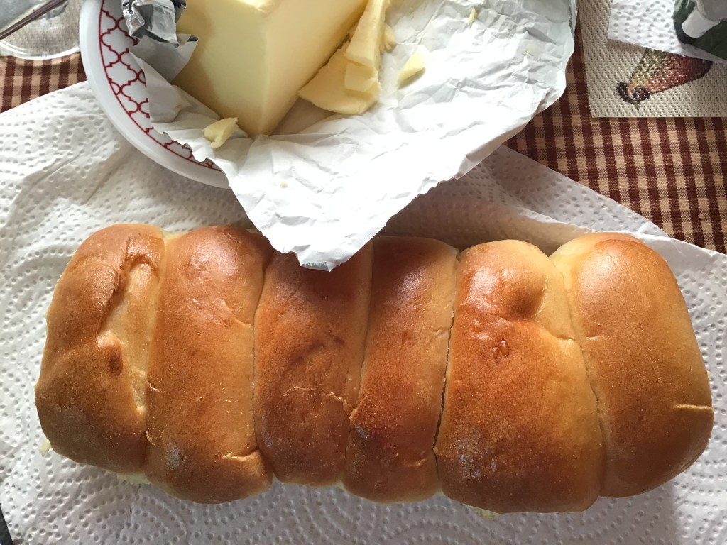 She came out exhausted bearing a big grocery bag full of her creations. We enjoyed lobster and crab tomato chowder with her home-made Buttery Potato Split Top Rolls for dinner. Absolutely delicious!