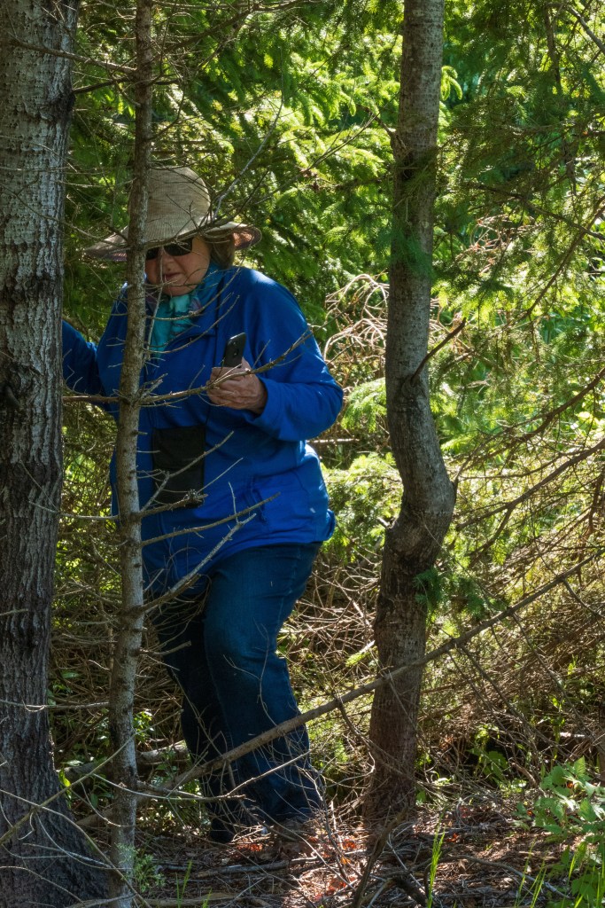 The reality was harsher than we would have expected from this gentle island. Kitty was alerted to nearby caches several times, but they all called for a steep decline down the railbed grade, a move often complicated by poison ivy. She still pursued some when they were more accessible, but we had no success today. There’s always tomorrow.