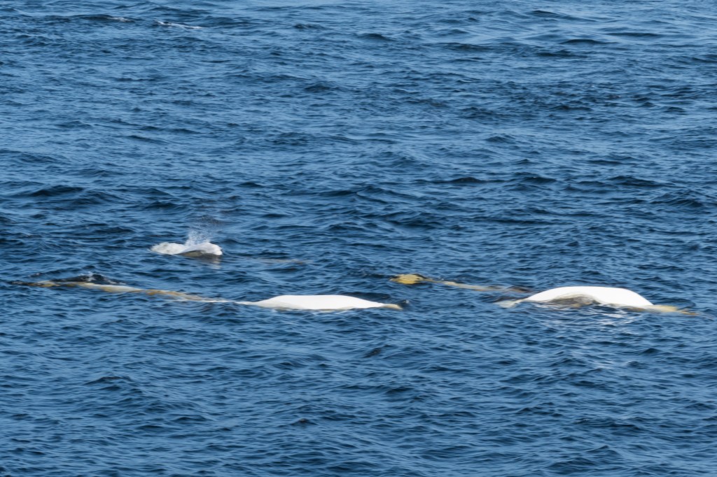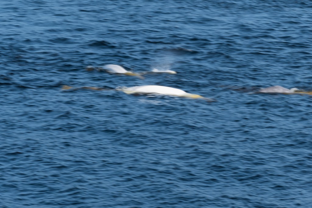 Almost immediately we saw a big bunch of Belugas.  They look like big white pillows floating and bobbing on the water. They have their babies each year in this area and then migrate down.