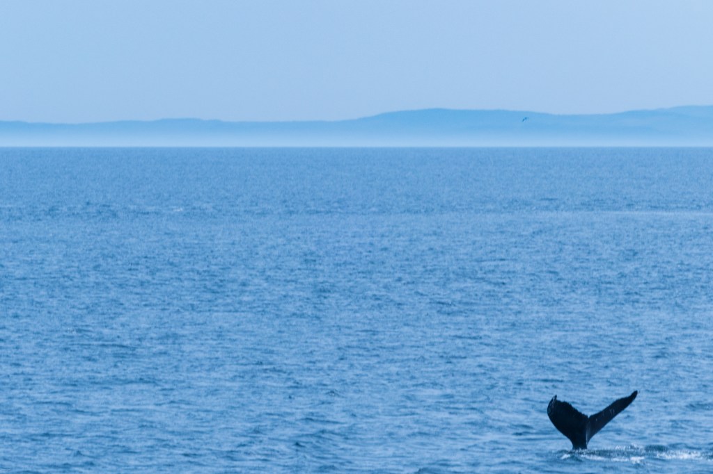But today there were tons of belugas.  Next, we saw some Minkes breaching.  We saw so many that it got old hat and I stopped screaming “Lorena! Lorena, look!” And then we were privileged to see humpbacks spray and spray water as they get their breath and then boom, their tails goes up in the air and they dive down.  They stay down various lengths of time and you can tell the type of whale by the length of time they are down.  We had a French speaking guide who taught us along the way. I kept having to ask Lorena to translate. I think we were the only two English speakers on the boat.