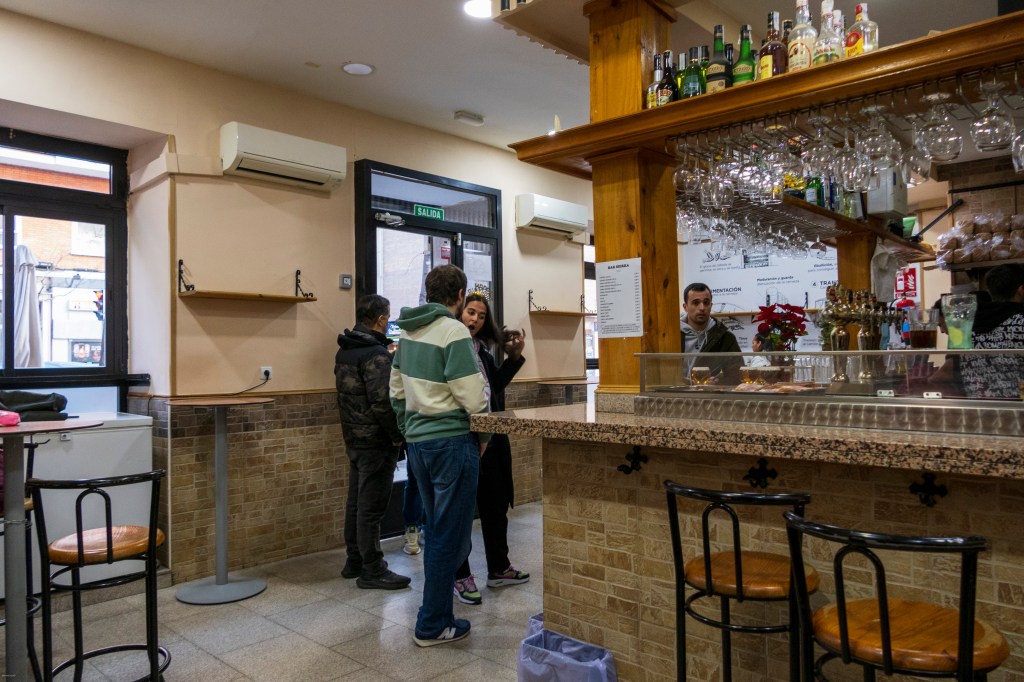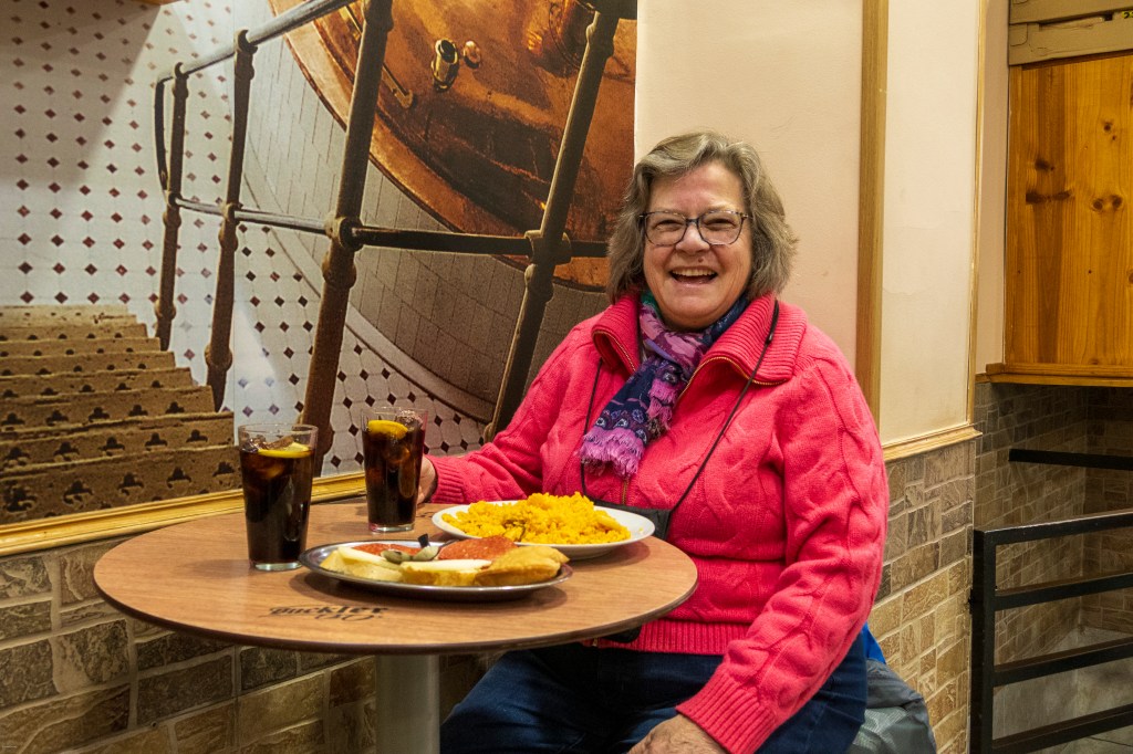 Back at the apartment I did photo work and K slept. Then about 5:00 we headed out down the street to the Sierra Bar where they served tapas Old Style, meaning you buy your drink and get your food free. Thus far in our multiple trips to Spain we had yet to get more than free olives or nuts with drinks. We were delighted to have two house vermouths, rice with seafood, bread with cheese & chorizo, and mini-empanadas all for €6.20 (about $7.40). I was only able to pull myself away with the promise of returning again soon—maybe tomorrow?