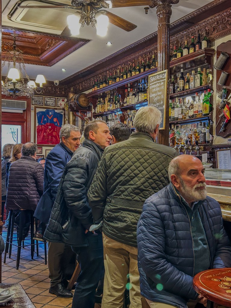 We stopped in a famous bar & restaurant, Casa Alberto. We tried barging in but this time it did not work. We were told to wait at the door. But the waiter did not forget us and he came and got us when a table was free. We had two vermouths and a wedge of tortilla- an egg and potatoes omelets. It is a Spanish delight. It was the kind of place you have to take in slowly. It is o old and storied. The more you look the more you see.