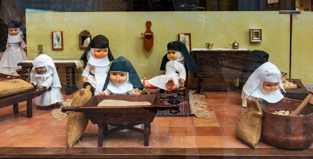 Another trendy item was marzipan. I fell for the nun thing and expecting shortbread and was burdened with a super sugary little marzipan cake. Finally, Cervantes and Don Quixote facsimiles were apparent in the hundreds. We were in La Mancha, after all.