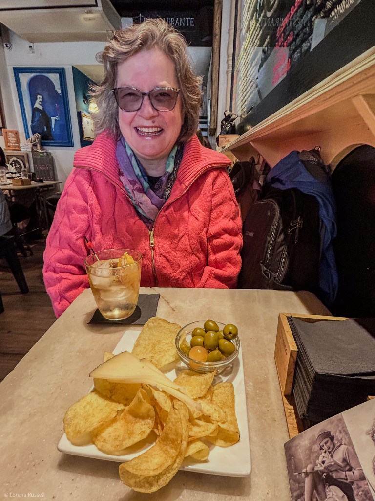 We had a couple of hours before check-in and no luggage, so we took time to do some sightseeing and get lunch. I’d marked a bar/restaurant as a possibility that was near the hotel. It was pretty classic. Families out for their Sunday meal. Macho in the air. One wall featured photos of Matadors, and another of their ladies. Very traditional.