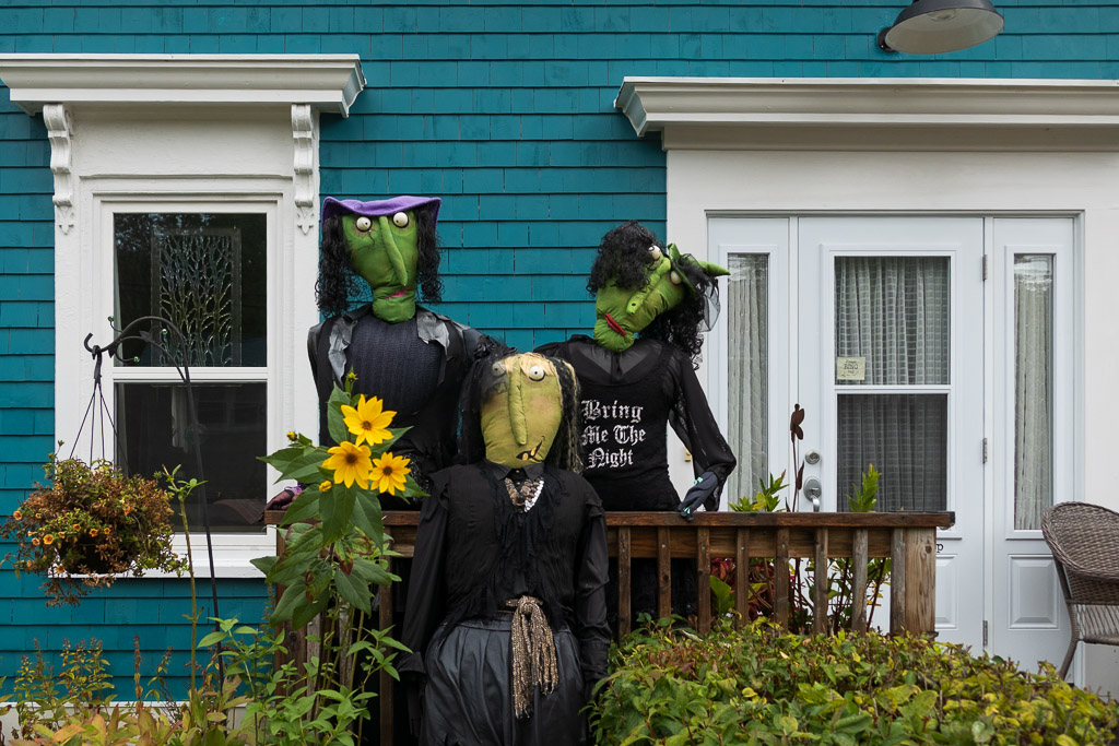 I had read about the “Bay to Bay Trail” that runs between Mahone Bay and Lunenburg and was looking forward to walking about 5 miles of it to a restaurant called “The Hungry Traveler.” I was to meet Kitty there for breakfast before we visited Lunenburg. I set off early through our neighborhood, past the requisite scarecrows, up a slight hill before turning onto the trail towards Lunenburg.
