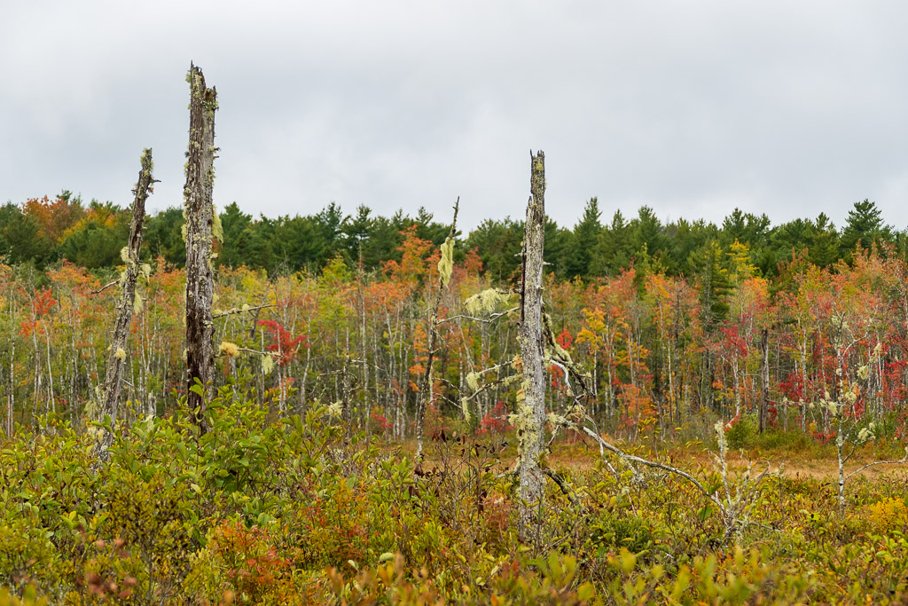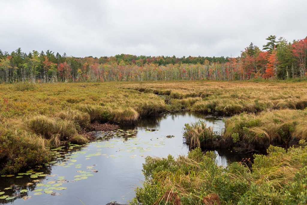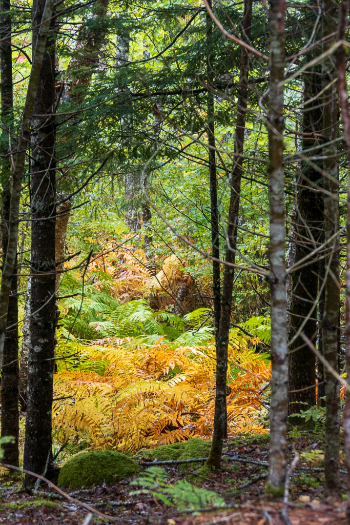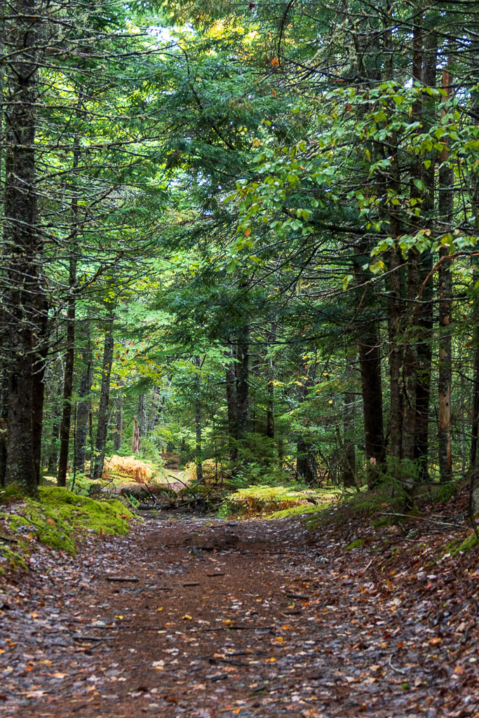 The trail of crushed gravel was built on an old railway bed and is part of the Rum Runners Trail that starts in Halifax and runs down the South Shore. At first the straight & level gravel trail felt unnatural. I remembered the Austrian architect Hundertwasser’s saying “A straight line is godless.” But all I had to do was to look to either side where the wetlands provided lush natural scenes of ferns, spruce and pines, black, swampy soil and the sound of running water. It had rained the night before so there was that wash of temporary relief from the extreme drought. I came upon a porcupine in the trail, but remembered from my childhood in Florida that they are not normally aggressive animals, so I told it I just wanted to pass, and it let me by without incident. It was actually pretty cute. And the trail turned out to be beautiful.