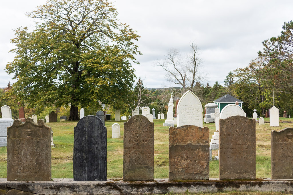 Lunenburg was much as I’d remembered with colorful, historical houses and shops on the shores of a lovely harbor. We started this time at the top of the hill at the imposing Lunenburg Academy, once a Victorian-era private school and now a center for various local foundations. It was adjacent to the old cemetery, which had graves dating back to the 1700’s.