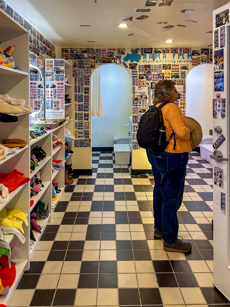 I’m not a big shopper, but I love the convenience of a city. I’d just thrown out my broken phone case and I see a “Laptop Repair” store with an entire wall of cases. It was so easy! We pass a small venue with Karaoke & Photo booths, each with an array of costume possibilities. Two families with small children approach as we leave. We end up buying some things at Jennifer’s of NS before heading to the Museum of Natural History via another indoor mall.